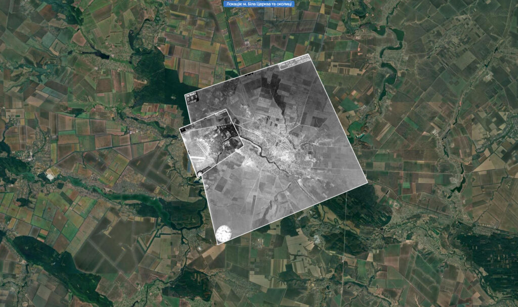 Це перший історичний шар періоду 40-х років в Локації Білої Церкви. Шар складається з двох знімків: один великого масштабу середньої деталізації – покриває все місто; другий знімок малого масштабу з високою деталізацією – покриває територію сучасного аеродрому: